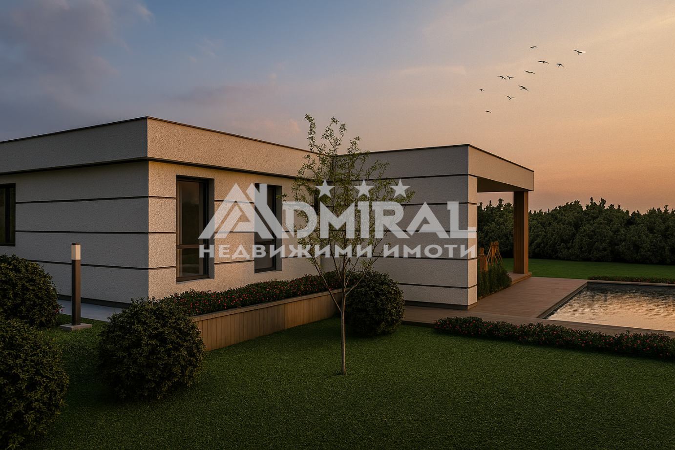 ADMIRAL НЕДВИЖИМИ ИМОТИ продава нова едноетажна къща, съчетаваща комфорт, функционалност и спокойствие – отличен избор както за целогодишно живеене, така и за ваканционен имот.